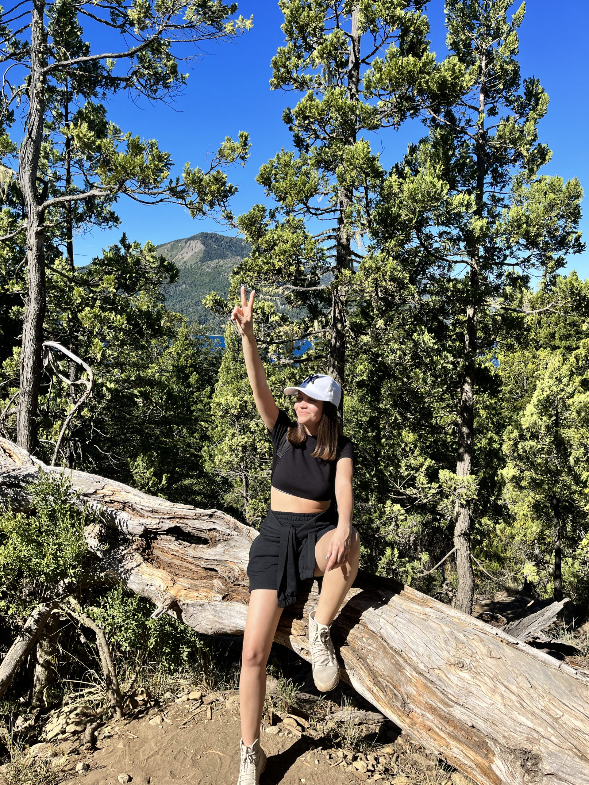 - Día 6: Este día íbamos a caminar bastante, así que elegí un look muy cómodo, nuevamente el pantalón militar, pero ahora con buzo negro. También me lleve un bikini, que terminé usando en un lago que visitamos ese día.