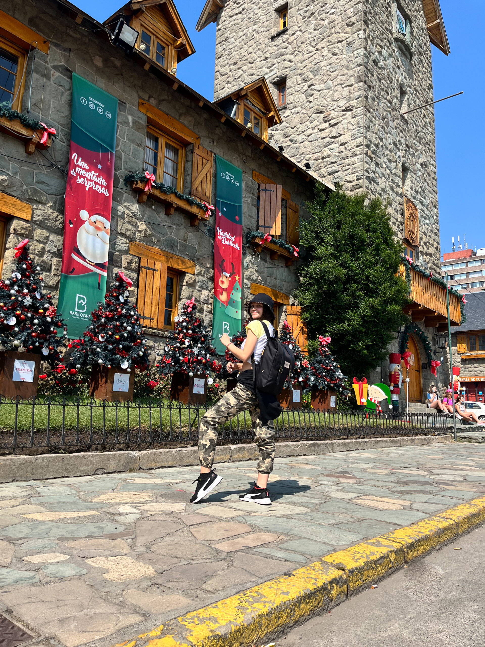 - Día 3: Paseamos y recorrimos el centro de la ciudad y al final terminamos en una playa. Este día use pantalón militar, con remerita blanca y también llevé un buzo negro atado a la cintura, siempre llevaba un buzo o campera porque el clima variaba mucho. A este outfit le sumé gorrito negro y por último zapatillas negras.