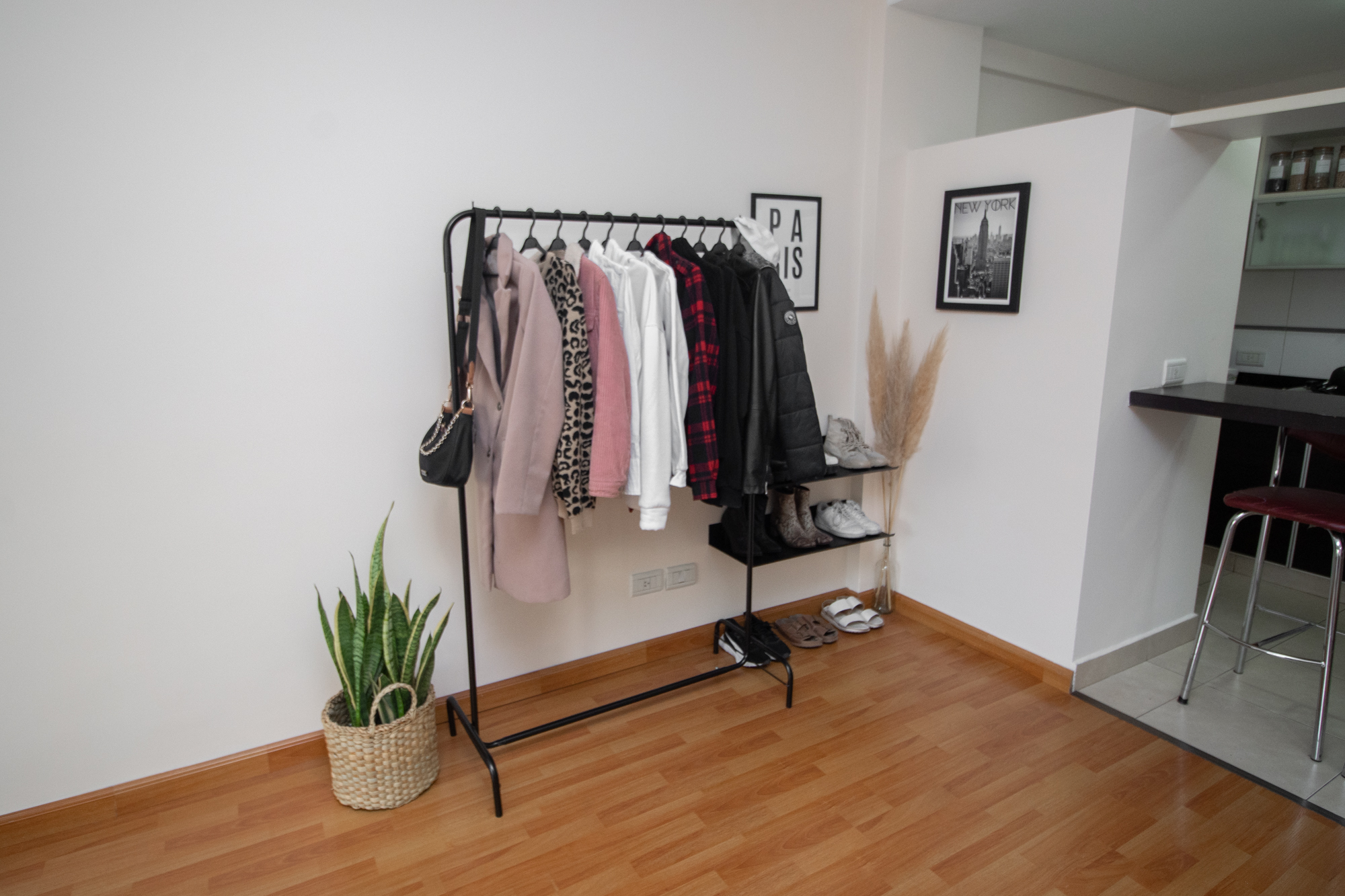El perchero es una zona que también cambie mucho, tengo uno nuevo porque el anterior se rompió. También sume un par de estantes, para tener exhibidos todos mis zapatos.